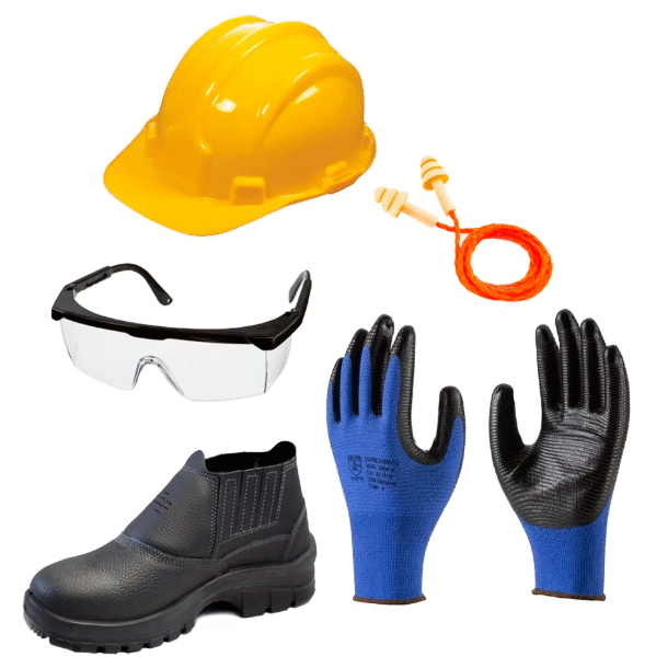 - Proteção auditiva – Protetores auriculares (tampões) ou abafadores de ruído para resguardar os ouvidos contra o excesso de barulho.